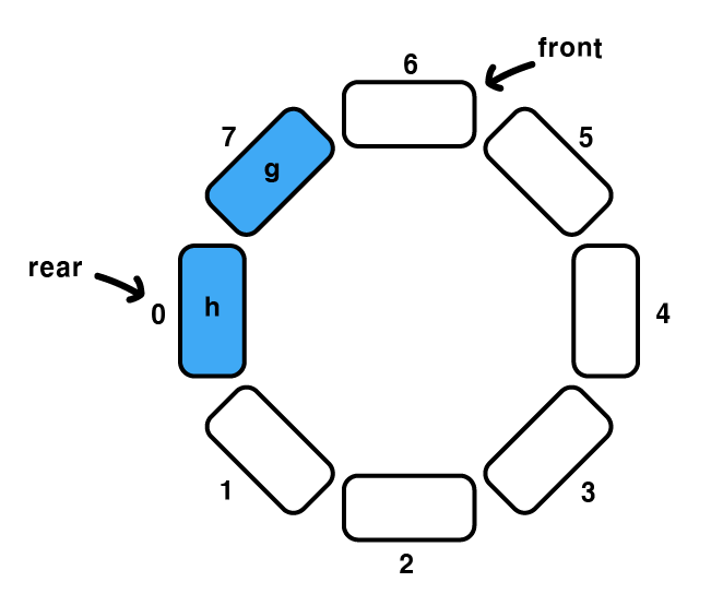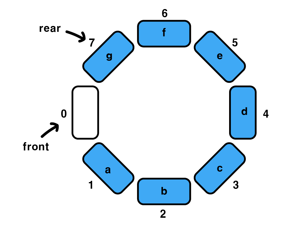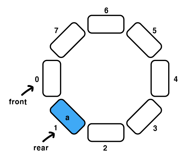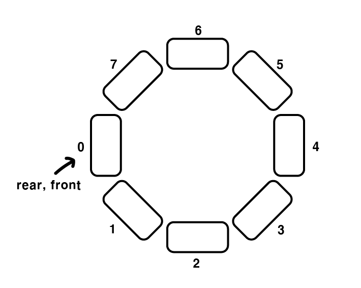 - front, rear는 0(가장 처음 인덱스)로 초기화 된다.