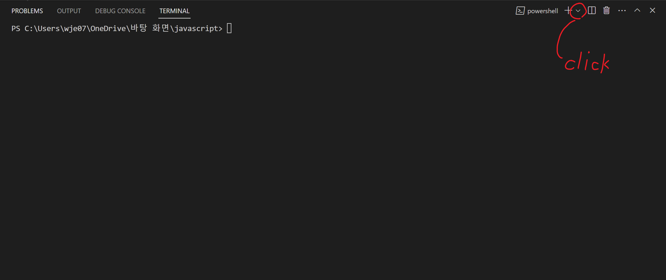 1. 터미널 우측 상단의 아래방향 화살표를 클릭합니다.