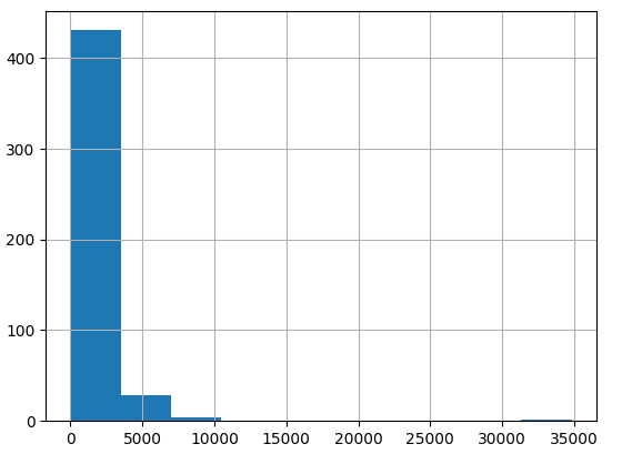 import tiktoken # Load the cl100k_base tokenizer which is designed to work with the ada-002 model tokenizer = tiktoken.get_encoding("cl100k_base") df = pd.read_csv('processed/scraped.csv', index_col=0) df.columns = ['title', 'text'] # Tokenize the text and save the number of tokens to a new column df['n_tokens'] = df.text.apply(lambda x: len(tokenizer.encode(x))) # Visualize the distribution of the number of tokens per row using a histogram df.n_tokens.hist()