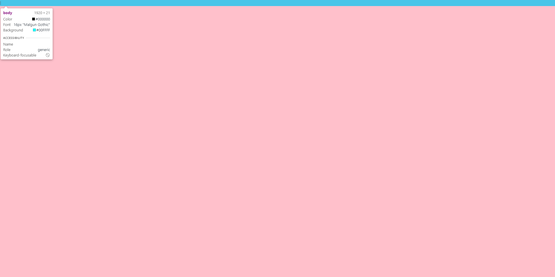 * { margin: 0; padding: 0; box-sizing: border-box; } html { } body { min-height : 100vh; width: 100%; }페이지 초기 세팅으로 위와 같이 설정하자. body요소의 width 같은 경우 설정하지 않아도 큰 문제는 되지 않지만 명시적으로 표시를 해주어 추후 헷갈릴 경우를 방지하자. 추가적으로, 컨텐츠의 크기를 제한하고 싶으면 width값을 70vw와 같이 설정하면된다.